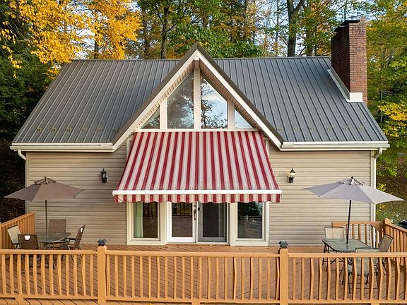 This spectacular lake view home has incredible views of Lake Bimini & is only the 3rd house from the beach. Enjoy the clear blue water & white-sand beach just steps away. Picture yourself sitting on the 32 x 13 deck and taking in the expansive lake view & magnificent sunsets. The retractable canvas awning keeps you cool in the summer & is great for entertaining. Walk inside to the open floor plan. Hardwood floors are located throughout the home & the lower level has new luxury vinyl flooring, perfect for entering from the walk-out, daylight finished basement two a family room with gas fireplace, bonus room that can serve as a 4th bedroom, half bath, & laundry. The main level of the home has soaring ceilings, hardwood floors, gas fireplace, beautiful kitchen with quality cabinets, granite countertops & back splash, and center island. The convenient first-floor bedroom has an ensuite. The open spiral staircase brings in the lakeview from the window wall of glass. There are two more bedrooms upstairs and another bathroom. The vinyl siding & stone, metal roof, and gutter guards make this home low maintenance & the forced-air heat & central air keep you toasty in cold weather & cool when the weather gets hot. The one-car garage is perfect for your car or water toys. Schedule your appointment to see this home & move in before the holidays. Just imagine your Christmas tree in front of the window wall where everyone can enjoy the glimmer of its lights both inside and out the home.