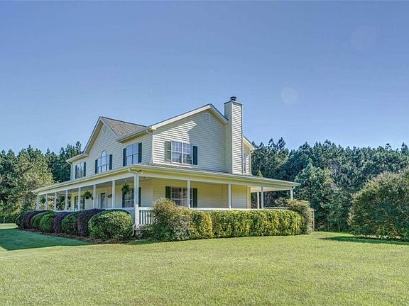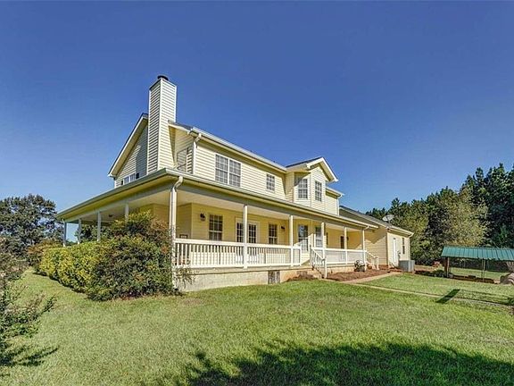 Coffee out back with the sunrise & cocktails in the front for sunsets on this wrap around porch! Completely fenced 2 AC home site surrounded by trees gives you the upmost privacy while the family plays in the yard or you work in the garden. Small run in barn for animals with small paddock & a storage building for all the extra "stuff". Beautiful hardwood floors on main with large dining room, family room to cozy up around the fireplace, formal living or office & spacious kitchen complete with solid surface,island & tile back splash. OH & t venings of entertainment! Upstairs is the large master suite, walk in closet. En suite offers a large soaking tub to detox all the days away! Other 3 bedrooms offer beautiful views and plenty of room! Great schools, small community, close to town & I20. AND....Door Dash will deliver!! Make your appointment today!