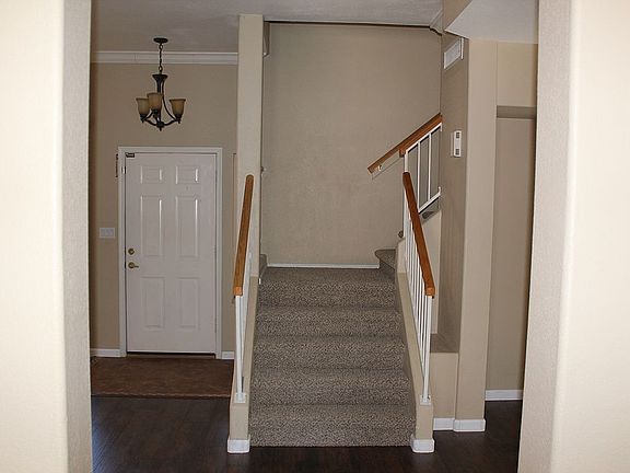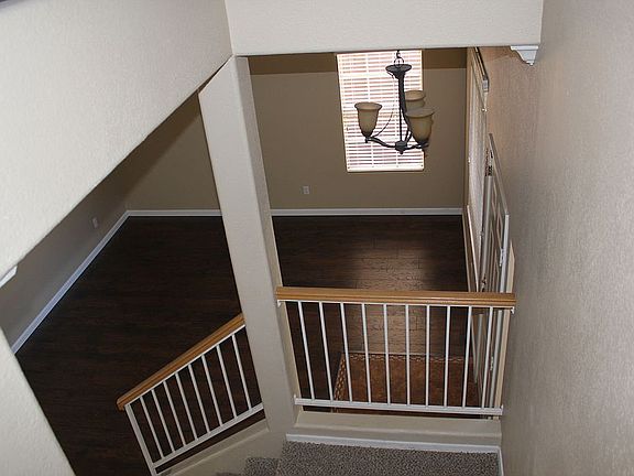 The moment you cross the threshold, you will fall in love! Wood flooring and crown moulding throughout. Eat in kitchen is complete with plenty of custom cabinets and white appliances. Laundry room upstairs!! Huge master suite has plush carpet with ceiling fan and picture windows. Full spa like bathroom with double sink vanity and separate soaking tub + shower. Spacious walk in closet! Beautiful backyard features a covered patio with lush green grass and a sparkling pool. This home is sure to go quick, so come see it today and move in tomorrow!