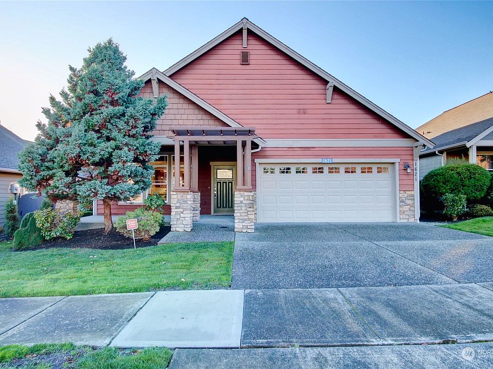 Welcome to this beautiful 2010-built modern rambler in the sought-after Big Fir 55+ community! This zero-grade entry home offers a spacious covered front porch and bright, open living space with vaulted ceilings, a cozy fireplace, and a dining area. The kitchen features granite countertops and newer appliances (gas or electric). Enjoy a handicap-accessible guest bath and step out back to a covered Trex deck or out the front door to your covered front porch, perfect for fresh air all year. Ideal for those downsizing or traveling, the HOA covers landscaping, fencing, sprinklers, and exterior maintenance. Community also includes a clubhouse and private walking trails. Conveniently located, you’re just 9 minutes or less from local amenities!