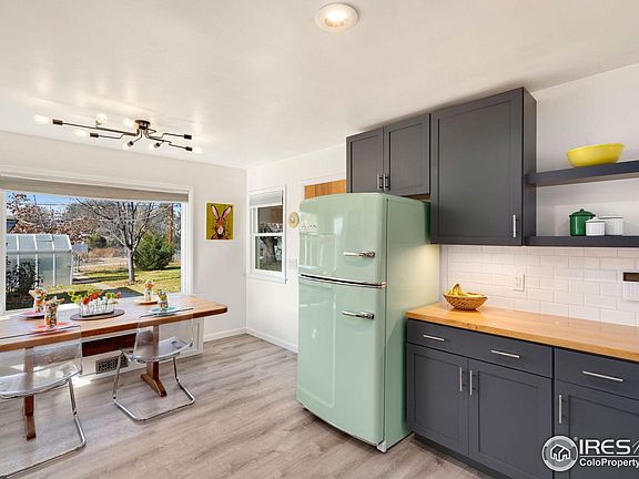 Amazing 1950s bungalow in the heart of Loveland - with a list of updates and upgrades that goes on forever including a fully remodeled kitchen, new 3/4 bath, updated full bath, new windows, covered front porch, doors, and more! The open concept main living area features a fully remodeled kitchen, a dining space overlooking the backyard, and tons of natural light. The kitchen is covered in floor-to-ceiling on-trend finishes - subway tile backsplash, butcher block countertops, low-maintenance luxury vinyl plank flooring, and "Big Chill" appliances is a nod to the home's original charm. The updated full bath boasts a separate water closet space with deep soaker tub, subway tile, LVP flooring, and new light fixtures. Each of the three bedrooms features beautiful original hardwood floors, and large closets with the primary bedroom boasting two closets. The combination laundry room and 3/4 bath features an oversized standing shower, custom vintage sink with metal frame, and stackable washer/dryer. Updated electrical, tankless water heater, and newer plumbing including sewer line from house to street (this update alone is a 27k improvement value)! The huge fenced-in backyard is perfect for gardening, playing, and entertaining - dust off your green thumb and enjoy year-round growing with the help of the greenhouse located just west of the garage. Don't worry about watering - take advantage of the sprinkler system in both front and back yards. The one-car detached garage is great for parking but would also be good as a private workshop or extra storage space. No HOA or metro district! Just a few mins bike ride or walk to several restaurants, shopping, schools, and 4th street. Home sits on a quiet cul-du-sac street surrounded by mature native trees. Don't let this home slip through your fingers - this charming bungalow is the perfect place to call home.