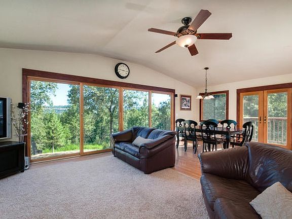 5 acres is setting for this mostly remodeled home. Updates include Hickory Cabinets and Granite Counters in Kitchen, New Flooring throughout, Crown Molding, all High End Low E Anderson Woodframe Windows. Stunning 16' wall of windows with fantastic views. Lots of possibilities for property including flat area for another house or horse set up. Carport and pad below. 2 Car Attached garage plus storage shed.
