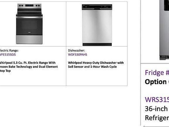 - Included: Electric Oven, Built-In Microwave, Washer, Refrigerator, Dryer, Disposal, Dishwasher
