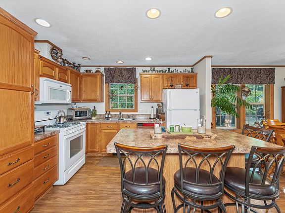 Find the peace and tranquility you've been looking for in this 2-bedroom/2-bathroom home located on over 21 acres of wooded land. This home includes an open concept living area with spacious kitchen, dining area, and living room with beautiful woodburning fieldstone fireplace. An office nook off the living room will be perfect for those working from home. Enjoy main floor living with laundry and primary bedroom w/ en suite both located on the 1st floor. Relax in the newly completed sunroom. An additional bedroom and full bathroom complete the main floor. The unfinished lower level is stubbed for another bathroom, providing a great opportunity to expand with its tall ceilings. Additional features include trails throughout the property, 24x16 pole barn, carport, backup wood furnace, and new whole house generator. This property has everything you've been looking for in a Northwoods getaway.