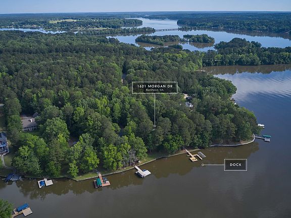 INCREDIBLE VALUE ON LAKE OCONEE! This beautiful one-acre property in Morgan Estates offers big water views from a level lot with mature landscaping and deep water access from a max dock. Enjoy your own lake retreat with an open floor plan showcasing stunning views from the living areas. The main level features three bedrooms, three full bathrooms, a laundry room, a spacious living and dining area, an open kitchen with counter seating, a screened porch, a large open deck, and a two-car garage. The lower level includes a family/rec room, a full bathroom, a flex room with a closet, and access to the expansive backyard. The property boasts a long, private driveway and a flat backyard leading to the max dock with a boat lift and sea wall. Located at the entrance to a wide cove, it's perfect for paddleboarding, kayaking, and swimming. Or hop on your boat from your private dock and hit the open water! Situated within the desirable Morgan County School System, this property is an incredible opportunity to establish a full-time lake residence or the ideal weekend escape. With limited lakefront inventory, this property offers tremendous potential at a great value!