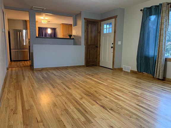 This wonderful home is tucked in Loveland's center, a quick walk to enjoy Lake Loveland or spend time downtown. Updated home throughout: new interior and exterior paint and updated kitchen with stainless steel appliances, including a 5 burner Samsung gas stove, Corian counters and seamless Corian sink with garbage disposal. All new light fixtures and switches throughout, new trim, new bathroom mirrors and new toilets. The upstairs bathroom has a barn door sliding closure. Gorgeous original hardwoods throughout the main floor, with laminate hard wood in the kitchen. Newer carpet in master bedroom. Easy entry to backyard from the 3rd bedroom, newly converted into a dining room. The backyard is a peaceful oasis with a 16 x 24 deck with black steel gazebo and cedar privacy fence with 3 gates. The backyard is home to an white lilac bush, an apple tree, a peach tree, a producing grapevine and fenced-in raised garden beds. Several pots are in the backyard along with two beautiful rose bushes, a button bush and a potted trumpet climber. There is also a brick outdoor fire pit and the yard backs to a large alley where you could park additional vehicles or a small trailer/camper. New efficient windows keep your utility bills low and keep the house quiet and comfortable. The neighbors are wonderful and there is an extra safety feature out front with the jersey barrier separating the driveway and frontage street from Highway 287. Two gorgeous shade trees right out front keep the house feeling a bit more private. Storage shed with counters and cabinet space for additional storage. Washer and dryer are included. One year lease term only. Option to renew seamlessly at the end of the first year. Dogs okay with vaccination and spay/neuter. Please, NO CATS! Deposit due upon signing of lease. Rent is to be paid electronically each month, through Venmo or Zelle or bank transfer. Please text (or email) to set up showings. Prefer to show in evenings after 7 pm as I work and live a bit south of Denver and travel north to show. If this cannot work for you, please still reach out and I can make arrangements for you to see the home. Thank you!