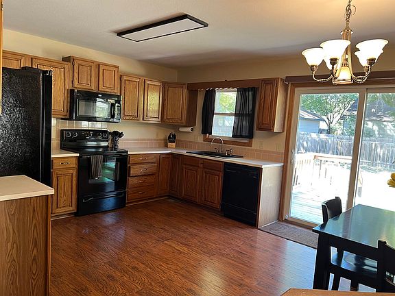 Unique open floor plan, 3 bedrooms on the main, large kitchen, formal dining or formal living plus a sunken family room with 10 foot ceiling. Well maintained home in awesome neighborhood and Maize Schools. This home also features newer windows, new interior paint, updated tile and 10 foot countertop in the master bedroom, make up vanity, double sinks and double closets. New low maintenance vinyl porch railing with a charming entrance to welcome you home. The unfinished basement features has great space to finish that includes rough-in bath, and tons of opportunity to be creative building equity in your home and still lots of storage room.