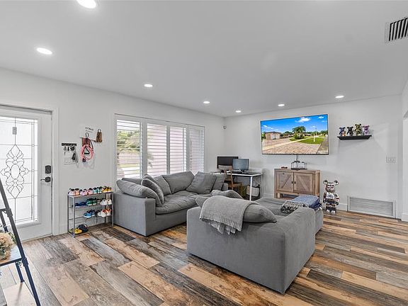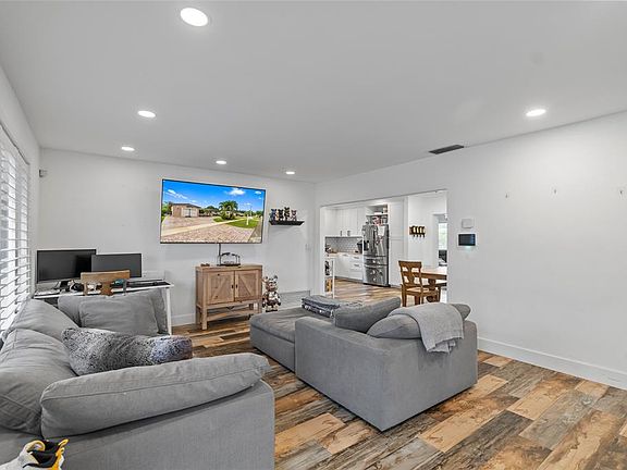 Welcome to this stunning 3/2 home, perfectly blending style and functionality! The exterior boasts a brand new 2023 metal roof, providing durability and up to 50 years of roof life. Step inside to find sleek tiled floors throughout the main living areas, complemented by laminate flooring in the bedrooms. The pièce de résistance is the recently resurfaced saltwater heated pool, complete with a fountain and a relaxing spa, perfect for unwinding and soaking up the sun. All windows adorned with elegant plantation shutters allow for precise control over natural light. Impact door and sliding glass door with accordion shutters throughout provide added protection. Security system included, complete with cameras monitoring the front and back of the house, ensures your safety and peace of mind.