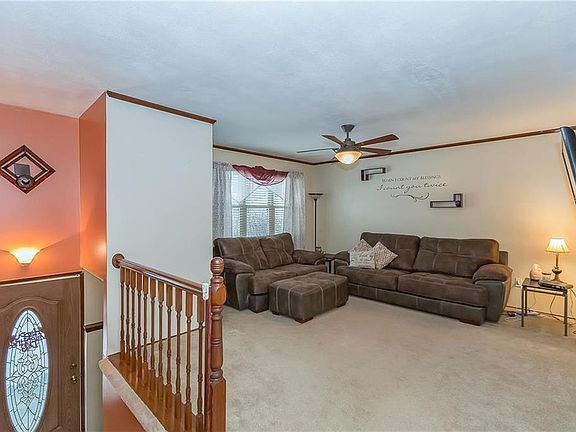 Nice 3 bedroom home that sits in a cul-d-sac. All bedrooms, Living room, country kitchen, with a nice pantry, are located on the main level. The Patio doors, from dining area, walk out to a nice 2 tiered deck overlooking a large, level, fenced yard. The lower level is finished for hanging out giving that added space. Close and convenient to highways and shopping. 3 garages with 1 being detached. Great for garage or work shop. No painting with this home, Maintenance free siding.