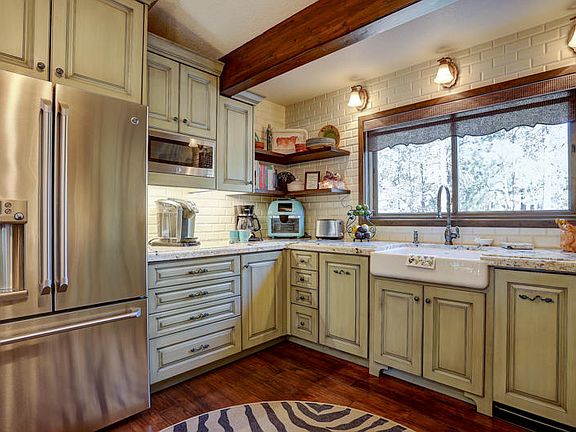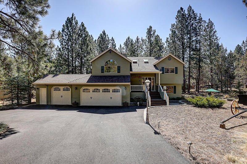 Updated 2600sf+ Awbrey Butte home with all the extras! Great single story living on main floor featuring Master Bedroom en suite, living room with hardwood floors, mini bar, and gas/wood burning fireplace, large deck overlooking private, wooded grounds and French country kitchen with high-end Stainless-Steel appliances, spacious pantry, large granite island, and so much more. Lower-level features family room, 2 bedrooms, 1 bathroom and a spacious deck with attractive water feature. This home boasts ample outdoor space for entertaining or simply enjoying the picturesque, parklike setting. Other features include oversized 2 bay garage with separate heated 3rd bay - perfect for shop, gym, or additional storage, bonus 260sf studio with heat/AC and separate entrance from 3rd bay garage or back deck. New turn-around asphalt driveway, beautiful landscaping, adjustable automatic sprinkler system, and too many other great updates to mention, so please see or request feature sheets.