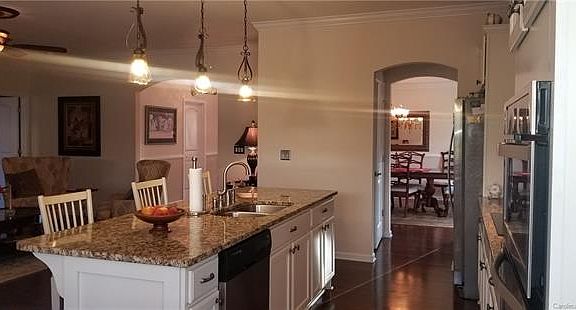 Beautiful ranch home with Upgrades Galore (hardwoods, custom kitchen, custom patio, crown molding, wainscoting). Spacious room for displaying personal decor throughout the home. Sitting room off the owners suite that leads to the cozy screened porch. Two car garage with long driveway and stone patio. Neighborhood pond across the street Must see.