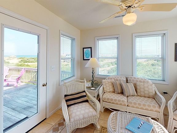 The ground level entry of this 5 bedroom/5 Bath home opens into an intimate gathering space with a 2nd refrigerator, dishwasher, sink and comfortable seating. Just a few steps further and you are in the patio area with private pool A king master suite on this level means you would never have to leave the ground floor, but you will want to go upstairs to see the wonderful views of the ocean. This house is professionally decorated with beautiful furnishings, custom cabinets, granite and marble tops and tile. Two levels of decks provide magnificent views of sunrises and sunsets in this very secluded area. The large hot tub and sun-room are crowd favorites. Gorgeous private pool, deck, and a large inventory of furniture make the poolside very relaxing. Extraordinary sightings include whales, migrating geese, ducks, pelicans and dolphins. Most days horses are visible on the beach and in the yards of cottages. This area is renowned for great fishing. The Currituck Lighthouse is located just a few miles south and its light is visible from the cottage at night. You too will find that you cannot get enough of the natural beauty of the area, with ocean and sound views from the two upper levels of this very private home. Come and stay awhile after making "Footprints in the Sand" your new home, rental property or second home...You will never want to leave. Located in an "X" flood zone which means...NO FLOOD INSURANCE NEEDED
