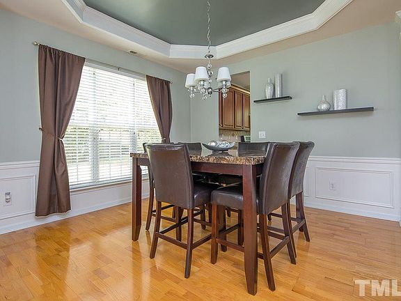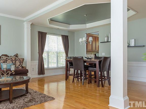 Pristine,Updated North Raleigh home. Custom crown & trim work throughout. HARDWOODS on main. Carpet in family. Upgraded kitchen cabinets w/ GRANITE, SS appliances ,TILE bcksplash ,ISLAND.Spacious family room w/ built-ins & gas fireplace. Flex room/Office downstairs with french doors. Inviting wrought Iron staircase.Spacious master bed with tray ceiling w/ en-suite bath complete w/ shower, sep soaking tub, dual sinks & walk in closet. 3 generous size additional bedrooms upstairs.Large patio & private yard