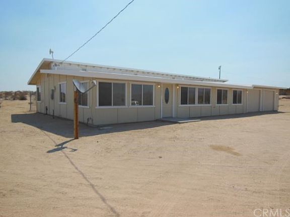 This 4 bedroom 2 bath home sits on 2.5 acres. Home is over 2000 square feet and has been remodeled with a bright, open, airy concept within the last 5 years. Home has tile in hallways, kitchen, most of living room and in one of the bedrooms/bonus room. Bedrooms and living area has carpet. Home has higher end cabinetry in the kitchen and baths. Central air conditioning, heating is forced air. 2 car finished garage, interior laundry room, HUGE master bedroom and closet as well as tiled master bath with easy entry. Near Joshua Tree Lake, where the music festival takes place 2 times per year. Also, located near Copper Mountain College. Call today for your viewing of this bright, open well thought out spacious home.