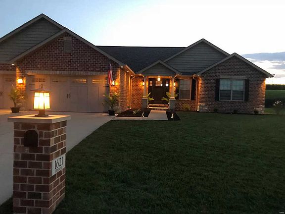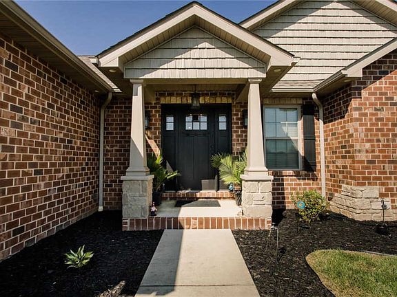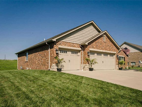 So many upgrades! 3 sided brick ranch home. Open concept split bedroom floor plan with vaulted ceilings in main living space. Main level has 3 bedrooms, 2 bathrooms, laundry room & tons of closet space. Master bedroom has tray ceiling,his & her closets with heated floor in master bath. Kitchen boasts a butler’s pantry, granite counter tops & under cabinet lighting & outlets.. Throughout the house, find built in nightlights, recessed lighting & built in speakers inside & out. Home comes with outdoor security cameras with DVR system & is wired for home security system. 12x12 Covered Patio with remote electric sunshade & additional 12x13 patio.Total of 96 canned lights throughout. Solid core doors. Finished 3 car garage with Carriage Garage Doors & ceiling fans & shop lights. Basement roughed in for bathroom and egress window. Huge storage room in basement with built in shelves & work bench. Electric dog fence and collar.