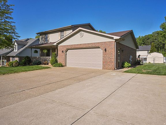 West Side! This lovely home is located in the desirable Meadow West subdivision. A lovely front porch graces the front of the home and is waiting for rocking chairs and morning coffee. Beautiful Luxury wood look Vinyl flooring greets you at the door and travels into the large living room. The living room has large windows for natural light and ceiling fan. The beautiful flooring travels into the dining area and kitchen. The kitchen has a breakfast bar that not only provides additional counter space, but seating, as well. Stainless steel appliances, new light fixture, tiled back splash and stainless sink with pull down faucet and soap dispenser, are just a few of the things that make you fall in love with this kitchen. The main level master bedroom has a new ceiling fan/light and a large walk in closet! A full bath is conveniently located outside the master bedroom. Upstairs, three additional bedrooms have nice closets and ceiling fans. The upstairs bath has new luxury vinyl wood look flooring, large vanity and new lighting. If you enjoy outdoor entertaining, the back yard is perfect for you! A retractable Sunsetter awning (has new fabric) provides shade for the large private deck. The large fenced yard has a nice yard barn and lovely landscaping. Need parking for a boat, RV, or extra vehicle? A large concrete parking space was added! Updates per seller: widened driveway, garage door, finished drywall in garage, HVAC 2017, Hot water heater 2020, downstairs bath updated, some subflooring and flooring, baseboards, paint throughout, front door, storm door, new lighting throughout, appliances, yard barn with electric, sump pump in crawl space.