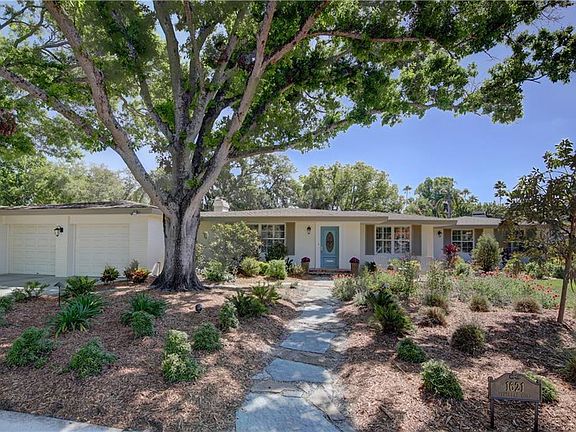 Located on a large corner lot in Belleair within walking distance to Belleair Country Club, The Pelican, and Belleair Bluffs shopping, this split plan, 4 bedroom, 3 bath home with fireplace, wood floors, recessed lighting, French Doors, brick patios has a very bright, newly refinished kitchen with a center island, granite counter tops and breakfast room - all open to a travertine patio. There are two Master suites, both with private entrances and a large family room for relaxing or entertaining. Plantation shutters on all windows. Dual 2-car garages opening onto separate streets.
