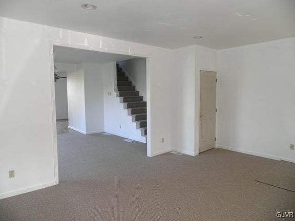 Fantastic opportunity to own an oversized twin in Salisbury township, covered front porch, 4 bedrooms, 1.5 baths, brand new berber carpet in living room and dining room featuring large picture window that floods the room with natural light, new flooring in updated center island kitchen with skylights and trayed ceiling plus generous breakfast area and access to deck with stairs to yard, powder room just off kitchen, 2nd floor features 3 bedrooms and full bath, bonus room on 3rd floor for fourth bedroom or office/den plus additional storage, 1 car off street parking, great yard with plenty of place to relax, full basement with outside exit. You will be pleasantly surprised with the unexpected space (over 2000 sq ft) this home offers, close to major routes and St Lukes Hospital.