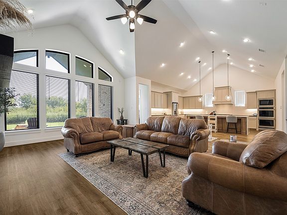Stunning Perry Homes custom build on a rare greenbelt lot! This 4-bedroom home includes an office, flex room, and a dedicated media room. Each bedroom features its own private bath. Soaring ceilings flood the space with natural light, complemented by level 5 stone countertops and a floor-to-ceiling fireplace. Gourmet kitchen with GE Monogram and Café appliances, under-cabinet lighting, and dual shower heads in the luxurious primary suite. Enjoy the 5-ft garage extension with yard access, two tankless water heaters, and an extended back patio. This sought-after floor plan is the model home for Perry Homes.