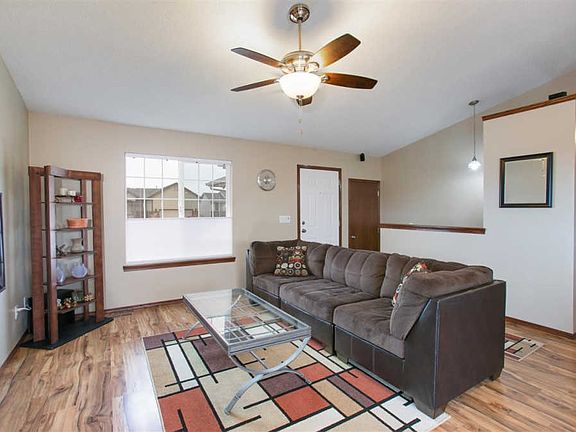 Welcome home to this updated, open concept 3 bedroom ranch in lovely South East Wichita. The living room beckons you in with warm wood laminate flooring and the large windows fill the rooms with sunshine. The new easy-lift honeycomb blinds let you enjoy the light or close it out. Elegant lighting in the kitchen lets you set the mood for cozy entertaining. Dishwasher and range stay, refrigerator is negotiable. The master bedroom has plenty of room to relax and big double closets. Step down to the game room and you will want to stay . . . with the projector and speaker system! Watch movies, play games or just hang out together. Modern floors in the basement bedroom are both gorgeous and low maintenance. The garage is a mechanic's dream with insulated walls, epoxy floor, and extra lighting and electrical outlets you can work day and night. Enjoy the sunset from the lovely large patio. All the bushes, trees and grass will stay health thanks to the sprinkler system and additional water from the pop-up drainspouts. Make this your home today!