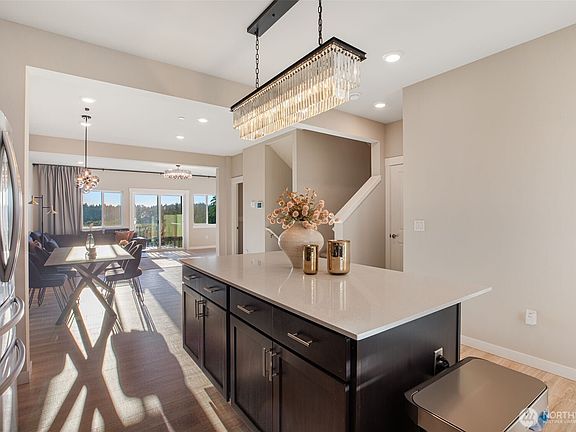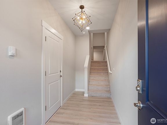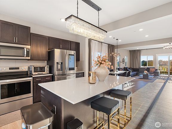 Contemporary & immaculate DR Horton resale by original owner. Corner single family common wall townhome. Tons of natural light. High end updated light fixtures. Main flr perfect for entertaining w/ open great rm, chef's dream kitchen w/ huge island, SS appliances & quartz counters. Dining area can accommodate a large table. Guest bed/office & 3/4 bath complete the main flr. Upper features primary suite w/ dbl vanity bathroom, walk in shower & spacious closet w/ custom organizers. 2 additional bedrms, full bath & laundry rm. 2 bay extended garage w/ space for a gym/flex rm & access to covered patio. Smart home locks, lighting & thermostat. Quiet location w/easy access to highways, top ranking schools & mins away to Mill Creek TownCenter.