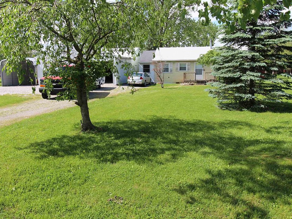 Contingent offer : on financing, inspection and appraisal. Continue to show for back up offers. For all those buyers that tell me they just need a small house with a BIG garage well here it is... Sitting on over a half acre (double lot) with some mature landscaping that gives you some privacy. The circle driveway makes for tons of parking, easy in and out or the maneuvering of a large vehicle. Your new home needs some attention to detail. The great room has a nice laminate floor and a wood burning stove. The bedrooms are split by a full bath. The eat in kitchen is nice sized with decent cabinets. The side entrance of the home is a laundry room/utility room/mud room that has amazing potential. The home is very live able but in need of quite a bit of cosmetic attention. The appliances remain but the double ovens do not work. On the other hand the outbuildings are a mechanics dream. The finished 7 car garage gives you unlimited possibilities and is set up to handle 2 separate lifts. Just in case that doesn't give you enough space there is also an over-sized 1 car garage and a possible car port. The back yard is partially fenced with a tall chain link.