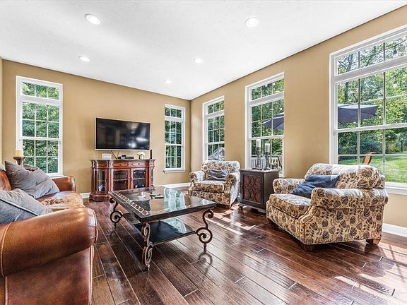Exceptionally maintained residence in the Spring Ridge neighborhood, Franklin Park borough. Enjoy the 1 plus acre homesite situate on private Cul-De-Sac. First floor features wide plank scrapped hardwood flooring, private Den with 10 light doors and transoms, elegant Dining room with crown moldings and custom remodeled kitchen/Morning room featuring granite counter tops, center island, abundant cabinetry, undercabinet lighting, custom ceramic backsplash, partially vaulted ceiling, convection oven plus upgraded stainless appliances. Kitchen opens to Family room that is highlighted by abundant natural light and perfect for entertaining. The expansive Owners suite includes large walk in and full bath. Three additional spacious bedrooms, all with paddle fans, and custom bath complete the second floor. The finished Game room includes wet bar, quartz tops, wine fridge and full custom bath with ceramic tile shower and provides additional square footage to entertaining A maintenance