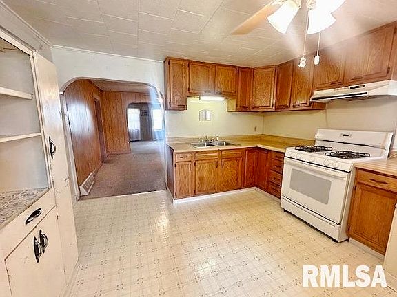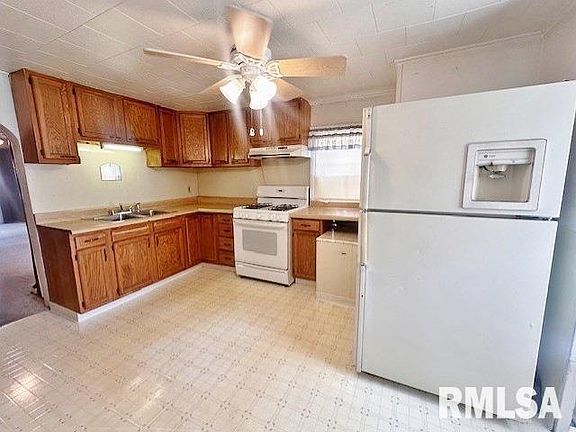 Come see this cute 2 bedroom, 1 bath ranch home that is situated on a large side-by-side 1/4 acre double lot. There are 2 separate fully fenced areas in the backyard, and the front yard is fully fenced as well! You will love the oversized 2-car detached garage! The living room is at the front of the home and is open to a large formal dining room. Good size kitchen is located at the back of the home and has a large walk-in pantry. Appliances stay in as-is condition. Generous size bathroom has washer/dryer hookups, so you can enjoy all main floor living. Home is currently handicap accessible with a ramp in front. Roof is newer (2019). Home is being sold strictly as-is.