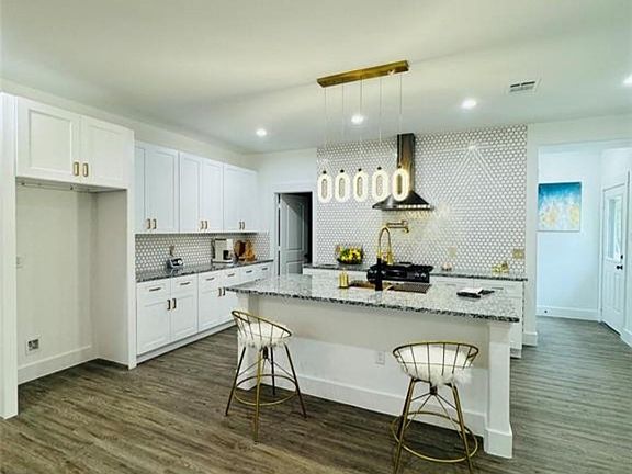 High-end finishesGranite countertopNine-foot ceilingsWalk-in pantrySoft close cabinetsOpen concept layout