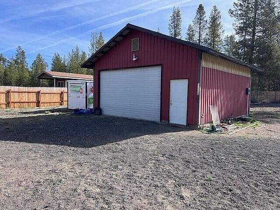 Private country living within La Pine city limits. Single family home, 1474 sq ft, 1 bedroom, 1 bathroom, very large and open living area and expansive kitchen for entertaining. Large open living area, with beautiful knotty pine walls and open beam ceiling. Large brick fireplace is a center of focus in the spacious living room. Ready to move in and enjoy - or plan your remodel or renovations. So much potential for this home and property to build your dream or to use as an investment opportunity. The 0.71 acre property is fully fenced and has 3 gated entries. Level lot with large gravel parking area, including space for an RV. 576 sq ft Garage/Shop/Pole Barn with electricity. Septic holding tank was replaced in 2020. 400 amp underground electricity. Private well.