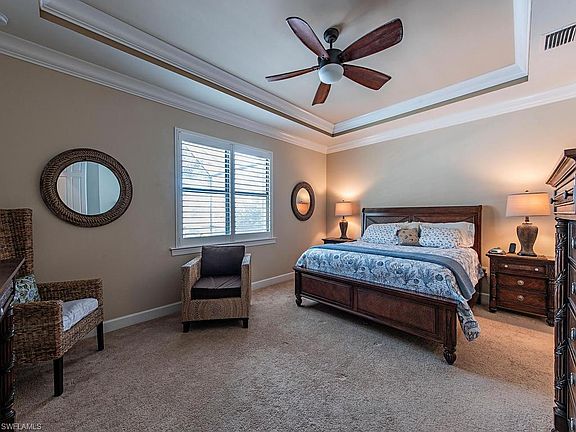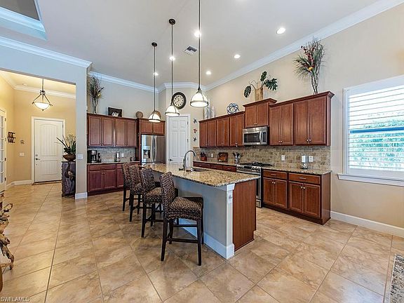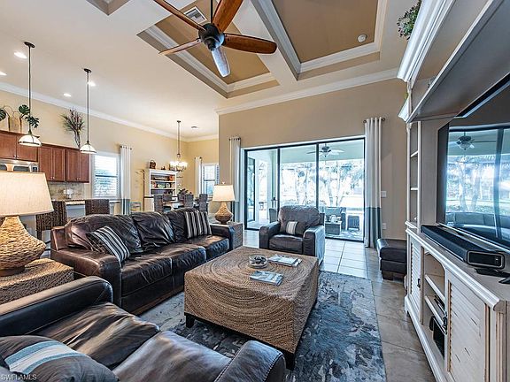 H.14378 - Looking for a new home but not the NEW price tag? We have it ! Meticulously maintained, this spacious one story pool home is set on a sparking lake view lot and offering an outstanding bricked patio with cage and custom summer kitchen. 3 large bedrooms, den, and 3 full baths , great room, and walk in closets, this Darmouth II plan is the perfect family home or winter retreat. Recent updates include NEW exterior paint , painted garage walls and sealed surface that comes with a lifetime warranty , 2017 &2018 kitchen appliances. Extensive builder upgrades; glass french doors in den , 8' doors throughout, crown molding throughout, extended master shower wall with glass,extended garage for 3 vehicles (standard size is a 2 car and a golf cart) and extended length plus a finished attic for extra storage with pull down stairs, beautiful tile flooring through main living areas, folding area and extra storage in laundry room, and so much more. Camden Lakes is minutes from public schools, and I-75 but off the busy Naples roads. A natural gas community by Pulte Homes; lawn maintenance and amenities: fitness center, fire pit, community pool.