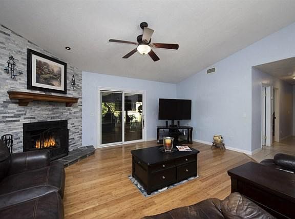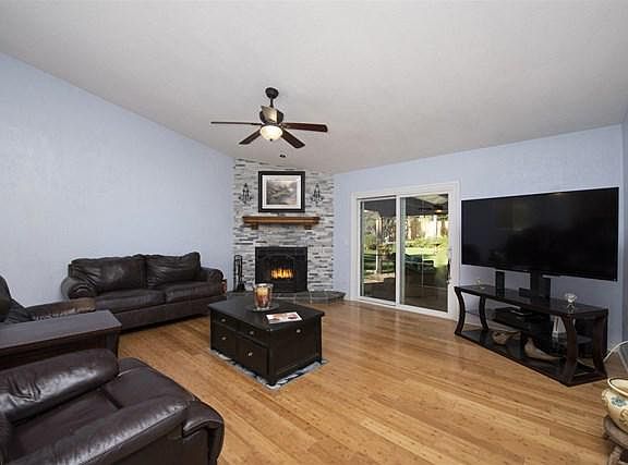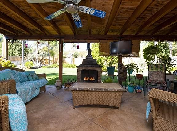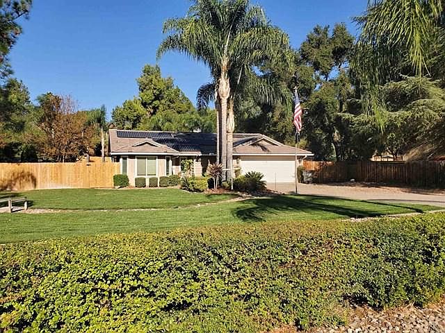 So much value at such an irresistible price. 3 bedroom home with paid for solar for low utility bills. City and well water to keep the Parklike setting green with lush lawns, palms and fruit trees. Covered back patio for entertaining. RV parking w/sewer hook up. Interior features eat in kitchen with 5 burner propane stove and double oven. Bamboo flooring and stacked stone fireplace in family room. New furnace and reroofed appx. 4 years ago. Filtration and soft water system.