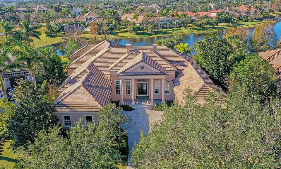 This luxurious custom built John Cannon 5131 sq ft., home can be found in the heart of The Lake Club. Situated on a quiet cul-de-sac, this single story residence offers long lake views and fabulous sunsets. Entering through double etch glass doors enjoy the high ceilings and custom upgrades. The dining room has 18.5ft ceiling & glass wall display shelving, there is a butlers pantry & wine room. Spacious living room with decorative ceiling, beautiful gas fireplace and a very large aquarium window, from which to enjoy the water view. Study with built- in bookcases & rich wood flooring. The kitchen has Viking appliances, granite countertops, backsplash and center island with prep sink. Large family room with multiple sliders opening to the outdoor area. Game room with bar, sink and refrigerator and a powder room. The Master suite is huge, with sitting area, en-suite bathroom with walkthrough double shower, soaking tub, vanity area and dual sinks. Three additional large bedrooms all with en-suite bathrooms. Quality fixtures and fittings throughout. Heated saltwater pool & spa, spacious paved pool deck, outdoor kitchen with grill, refrigerator & burners as well as a gas fireplace. Convenient full pool bathroom, with shower, directly off lanai. This is a great home for entertaining friends & family. Lots of storage space too. Fenced area for a dog, at the rear of the property. Whole home generator installed 2021. Two AC units serving three zones. Two, two car garages, one of which is air conditioned. Experience the luxury lifestyle of The Lake Club, private clubhouse with restaurant, fitness room, swimming pools, tennis and much more. Easy access to I-75 & UTC Mall.