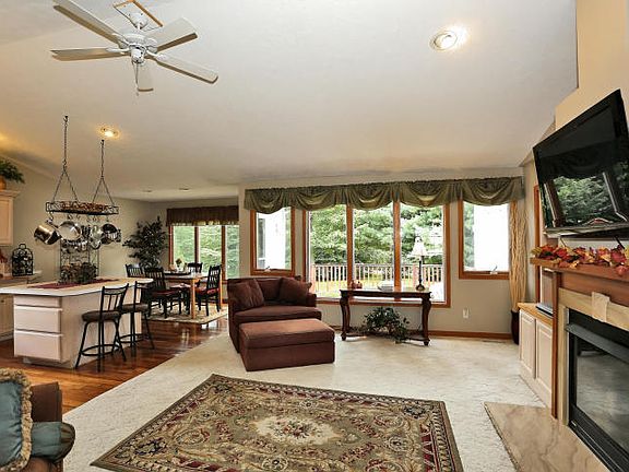 SPACIOUS WALKOUT RANCH IN SPRING LAKE SCHOOL DISTRICT! This 4 bed, 3 bath home in a desired neighborhood features an open floor plan, cathedral ceilings, and skylights that fill the home with lots of light. Living room has gas log fireplace w/built-ins and wall of windows overlooking the private wooded backyard. Spacious kitchen w/stainless steel appliances, center island w/snack bar, and wood floors. Main floor Master Retreat w/French doors to deck boasting a beautiful view of the expansive backyard. Master bath features Jacuzzi tub, tiled floor, and walk-in closet. Main Floor Living with easy access Laundry. Possibilities are endless on the spacious lower level w/2 bedrooms and 1 full bath, built-in bar, built-in storage shelves & walks out to patio. Two separate HVAC systems.
