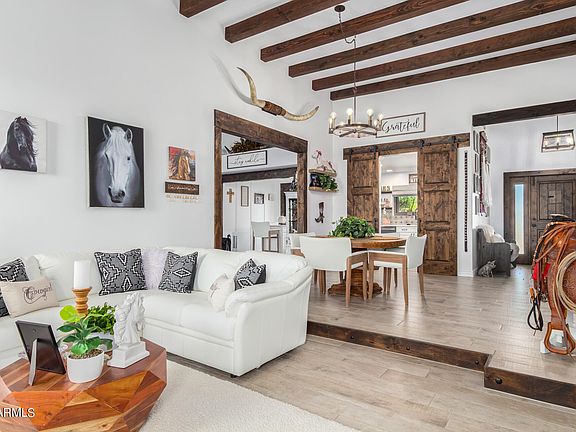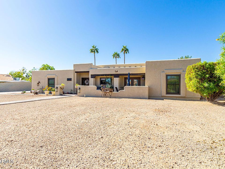 Tastefully appointed and completely updated Santa Fe style gem located in a highly desired area of Glendale. This lovely home offers custom touches around every corner, the split floorplan, open and updated kitchen featuring new black stainless GE Profile appliances, quartz counters and designer backsplash, wood beamed lined ceiling, sunken living area with wood burning fireplace all lend to the southwest charm, there is one brand new HVAC unit, brand new pool equipment and the garage floor has been freshly epoxied. The attention to detail here is second to none, this truly custom home sits on an oversized lot and is located in a non HOA community. This is a true must see!