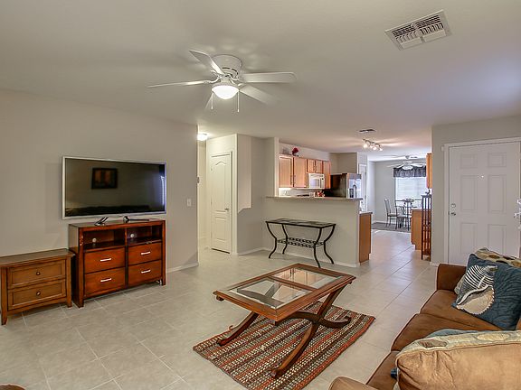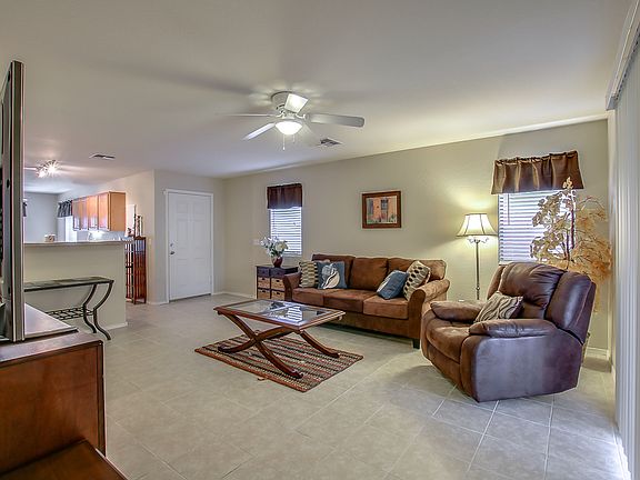 3 Bed 2 Bath Split Floor Plan Home in Legacy Parc with new carpet and paint! Tile flooring in living areas, kitchen and bathrooms. Master has walk in closet, all bedrooms are nicely sized with ceiling fans and new carpet. Kitchen has plenty of cabinets, breakfast bar, pantry and eat-in area with a stainless side by side fridge (other appliances are black). Backyard has covered patio, paved area for additional seating and grassy area. Washer, Dryer and Fridge included. Legacy Parc community has grassy areas and community pocket parks.