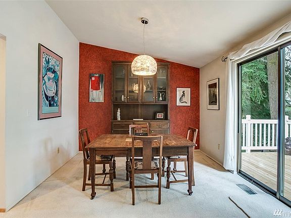 Experience this one of a kind Fairwood Greens home. Private backyard backs to creek that runs along a green belt. Patio, sports court, fire pit. Living rm has fireplace & views. Formal dining. Updated kitchen w/stainless steel appliances, hardwoods. Master suite w/sitting area, private bath. Two guest rms on main share remodeled spa-inspired bathm w/ Corian counters, soaking tub. Family rm fits game tables. 4th bedrm downstairs, Bathrm w/shower. 3 car tandem garage, tile roof. Kent schools.