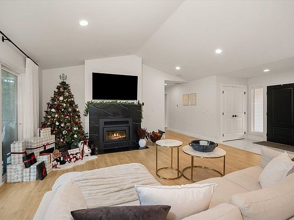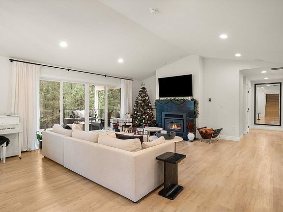 Set on 11 acres of picturesque land with stunning mountain views, this custom-built home blends modern design and country living. The entryway opens into the living room with a wood-burning fireplace and direct access to the covered patio, where you can relax and enjoy the breathtaking views. The kitchen features GE Café appliances, quartz countertops, custom cabinetry, and integrated bluetooth speakers that extend to the back porch. The luxurious primary suite boasts a soaking tub, tiled walk-in shower, and double sinks, offering a private retreat. Enjoy heated floors in all bathrooms and the laundry room, a central vacuum system, and designer lighting throughout. The bonus room, complete with an office, offers flexibility for use as a playroom or gym. This amazing property also includes a seasonal creek, a roundabout driveway, and plenty of space for a shop! With school bus pickup conveniently located at the end of the driveway, this home is a rare opportunity to enjoy modern living with high-end amenities.