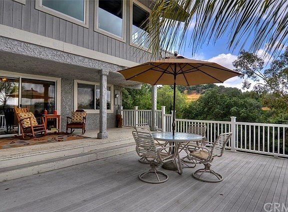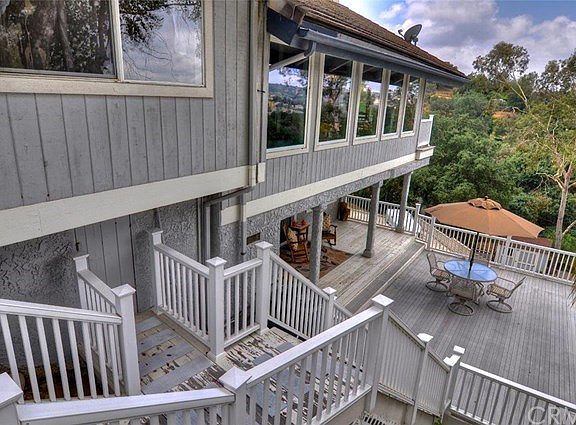 Car lovers dream home. Sprawling 40,500 SQFT (1.3 acres). Custom home remodeled in 2014 built in 1975. Private, fenced property with an electric gate. Panoramic views of the sunset, canyon, and mountains. Close to golf course. RV parking, sports court, playhouse/shed. Scenic landscaping including oak trees, pepper, eucalyptus, and carrotwood trees. Natural landscaping with automatic sprinkler system. 3-car detached finished garage with overhead lighting, carport for six cars. Interior features, new windows and ceiling fans throughout. Wood, carpet and tile flooring. Family room features a wood burning fireplace and access to large deck. Formal dining room offers cathedral ceiling and wood flooring. Kitchen offers stainless steel appliances beautiful quartz countertops. Guesthouse / STUDIO separate entrance. Kitchen with dishwasher refrigerator, full bath. Wrap around deck to enjoy panoramic views.
