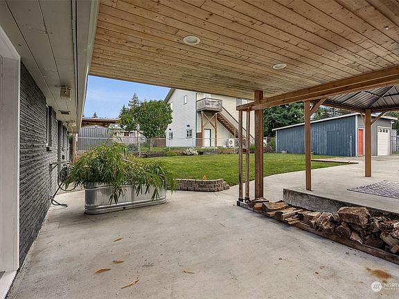 Charming Brick Rambler in Gregory Heights,minutes to Olde Burien. Full remodel 2015 + many cosmetic improvements since. Open floor plan living/dining room, w/wood stove in the center of home.Kitchen off living/dining features ample cupboard space, stainless appliances, granite countertops throughout Laundry off kitchen in closet Ample closet space throughout, 2 extra beds good for office. Primary suite boasts 2 closets, en suite bath with 2 sinks. Fenced backyard, awning off back door, gazebo.Poured patio + stone patio. Perfect space for hosting Sprinklers, space for RV or cars, detached shop/garage, come check out this lovely home! Home being listed below market value for quick sale, offers will be reviewed Monday July 15th