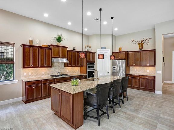 You'll take comfort in knowing that this home, its roof, and all appliances are only 5 years young! LET ME INTRODUCE YOU TO THE HOUSE OF MORE! 2615 sq ft home with 3 large bedrooms, 3 full baths, den, & 3-car garage. WANT MORE? Gourmet, chef's kitchen with huge center island, high-end Kitchen Aid appliances, natural gas cooking, endless cabinet space, & large pantry in this open-concept home featuring soaring, coffered ceiling & upgraded tile. STILL MORE? Indoor & outdoor living become one with zero corner sliders making this the perfect home for entertaining because...wait... there is also an outdoor kitchen with top-of-the-line Lynx grill on the home's natural gas line, a 2nd full-size French door refrigerator, sink & cabinetry. IT DOESN'T STOP THERE! Relax or entertain your guests on the massive screened lanai complete with upgraded paver deck, huge pool & spa with waterfall feature (pool and spa are heated by natural gas) overlooking the tranquil lake setting. YES, THERE'S EVEN MORE! Spa-like master bath with giant soaker tub, granite counters, double vanities, glass enclosed showers in all 3 bathrooms, & tons of closet space!