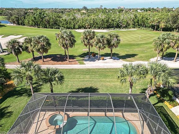 Open floorplan with 3 bedrooms, den, 3 full baths, and a 3-car garage, this estate home has a fabulous view of the 9th green from the living area and pool deck. And it's totally storm protected with electric roll-down shutters at all doors and windows. This was the site of the $1.5M 2022 LPGA Drive-on Championship. The open concept with pool and spa and the fabulous golf view makes this a rare offering. It's been 3 years this model has been available. Low quarterly HOA fees include a 24 x 7 attended security gate, 24 x 7 fitness center, community pool, 4 Har-Tru tennis courts, full lawn maintenance, Xfinity fiber-optic cable TV, DVR, and high-speed internet. The Golf Club at Crown Colony is the heart of Crown Colony and only a 5 minute walk from the house, with a very active social/dining or golf membership available and totally optional.