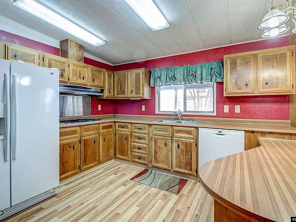 This home is well maintained and move in ready! Bright and cheery with a covered front porch, the yard is nicely manicured and welcoming. Enter to the large living room area with a built in, lighted display case. The adjoining dining area features additional shelving. The kitchen features lots of cabinet and counter space, newer appliances and a double oven.