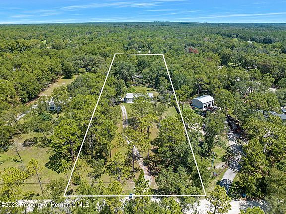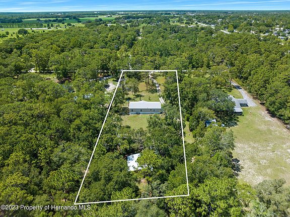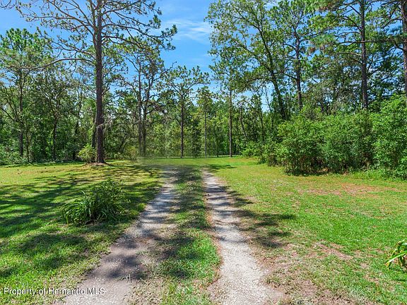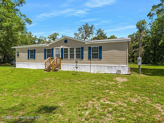Active Under Contract - Accepting Back Up Offers. Peace and tranquility await! A long driveway leads you to this charming 3 bedroom, 2 bathroom manufactured home, nestled on 2.4 acres of land in Brooksville. Built in 2007, it boasts over 1,900 square feet of living space with an open and airy split-bedroom floor plan, enhanced by cathedral ceilings and sleek crown molding. There's plush carpeting throughout for added comfort, plus tile in the wet areas for easy maintenance and durability. The main living area is the heart of the home and presents a spacious living and dining room combo, perfect for hosting gatherings and entertaining guests. The well-equipped kitchen offers ample space for a dinette. Additionally there's a large pantry, ensuring storage for all your culinary essentials. The countertops are Formica and are tastefully edged with tile. There is also a breakfast bar which is perfect for enjoying casual meals. Adjacent to the kitchen and primary suite is a bonus room which can serve as a home office, craft room, or a versatile space to suit your needs. Both guest bedrooms are quite sizable and conveniently have large walk-in closets. Convenience continues with an interior laundry room, equipped with a washer and dryer which are both included with the property. The primary bedroom offers a roomy walk-in closet, providing plenty of storage for your wardrobe. The ensuite bathroom boasts an abundance of cabinet space, double sinks, a large garden tub, and a step-in shower, creating a spa-like retreat. Outside, a detached 2 car garage awaits, spanning an impressive 900 square feet and offers power and lights. This garage includes a workshop area for all your DIY projects. The property is surrounded with wire fencing, ensuring security and peace of mind. For added accessibility, a ramp is situated outside, leading to the second entrance into the kitchen. There's tons of space to park your boat or RV, and room for that dream pool, too! You're minutes away from US-41 and not far from an entrance to the Suncoast Parkway, so travel to Tampa is a breeze. Don't miss out on the opportunity to call this lovely property your home. With its idyllic location, spacious living areas, and ample amenities, this Brooksville gem will not last long!