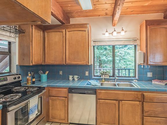 Feel your bliss in this peaceful mountain haven. Set on 2.5 acres lovely 2 bed 2 bath, 1216 sf home plus 2 car garage and 650 sf studio above the garage. Home features soaring windows, abundant light and vaulted ceilings, living and dining areas with wood stove and Hardwood flooring, charming kitchen with new stove, loft office/family space, and spacious bedrooms. Master suite with walk-in closet and glass slider doors that lead to an outdoor in-ground stone Jacuzzi tub (new pump and heater) and outdoor shower. An abundance of decks for entertaining, garden beds and gated garden behind the house. Central heat and air. Oversize garage with workbenches and second laundry area. Spacious studio above garage features full bath and and kitchen. Fresh paint throughout. All in a beautiful and tranquil mountain setting. Close to summit store, and mountain wineries, easy drive to valley or beach. Comcast internet. Los Gatos Schools (Loma Prieta, CT English and LG High)