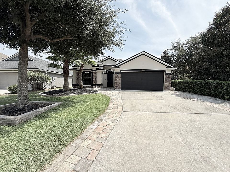 Tall ceilingsBack patioBright open concept designExtended paver driveway