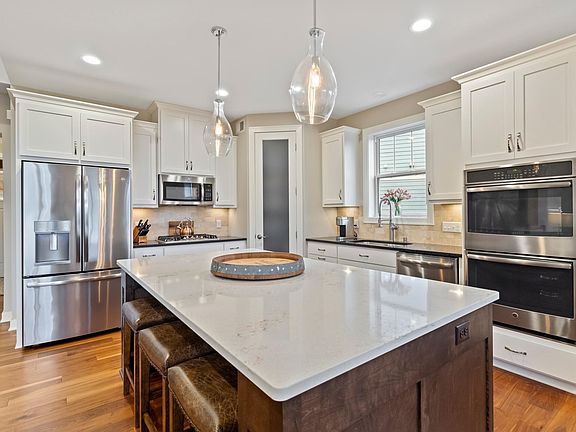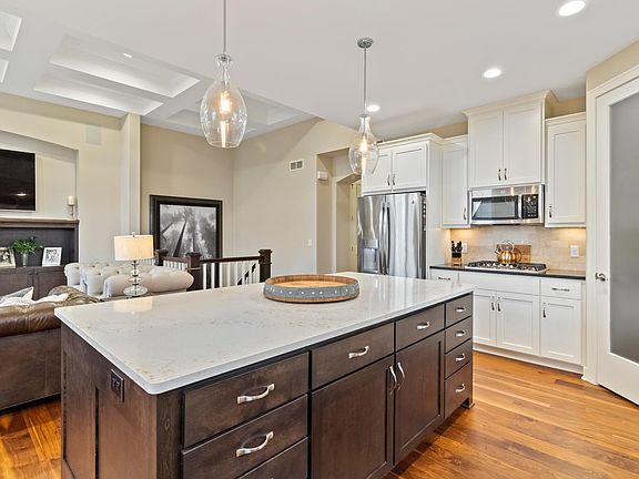 Don't miss this opportunity to own one of the most upgraded detached townhomes in The Spirit of Brandtjen Farms. this home is stunning and boasts beautiful white enameled wood work throughout, an open floor plan, coffered ceilings, upgraded lighting, Automatic Hunter Douglas blinds on 4 season porch and living room and wood floors. The chef's kitchen is appointed with double ovens, a huge center island and granite counters. Enjoy the four season porch all year, the front porch on warm summer nights. There is a stone surround fireplace on each level. The main level owner's suite has a dream bathroom and large walk-in-closet. lower level has 2 bedrooms and a Family Room large enough to have the whole extended family over in one room, an exercise room and an amazing amount of inside storage. The three car garage is large enough for all your recreational equipment. The development has a wonderful club house with inground pools and parks throughout.