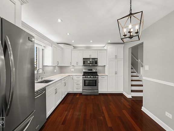 This home has it all. Everything is done from windows to roof. Step inside the main level featuring hardwood floors, all white baseboard and window trim. Bright and airy living room. The main level also has a remodeled kitchen with bright white cabinetry, canned lighting and stainless-steel appliances. A large farmhouse sink, and white marble countertops. Subway tiled backsplash and under counter lighting. Separate dining room with canned lighting and newer sliding door leading to deck. Upstairs awaits 3 large bedrooms all with newer carpeting and ceiling fans. California closet concept in a couple of the bedroom closets. The main bathroom is updated with a whirlpool tub, new vanity with white marble top. Primary bedroom has 2 large closets. Back down to the lower level which features a huge, carpeted family room. There is also a recently updated 3/4 bath with walk-in shower. New vanity and marble countertop. Large laundry room with large closet for additional storage with sliding barn door. Furnace, A/C and hot water tank are all approximately 5 years old, as are the roof and windows. Smart thermostat. So you can enjoy your home worry free for years to come. There is also a clean dry, concrete crawlspace that can be utilized for additional storage. Don't forget to step outside to the large fully fenced backyard. Not to mention the large 25' x 14' deck which is great for outdoor entertaining. Home is professionally landscaped with paver path in yard and concrete walkway to front of home. Home also has underground irrigation to keep the lawn green. Home also features a deep 2 car heated garage with epoxy finished floor. Great Tinley Park location close to schools including the elementary school which is just 3 blocks away and no need to cross any busy streets. Also close to the 80th Ave., Metra train station as well as the many Tinley Park / Orland Park dining and shopping establishments nearby.
