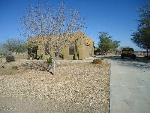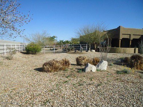 3 bdrm/2 bth + Office semi-custom home on acre+ horse property! This beauty features: Wood blinds throughout, tile in all right places, carpet on secondary bedrooms, wood on master bedroom, high ceilings, designer paint, beautiful hickory cabinets, granite countertops and stainless steel appliances, built-in desk, hutch. Office has custom built upper cabinets, desk and file cabinets. Did I mention a beautiful play pool with water features, tons of flagstone cool deck and fully custom fenced. Bring your clients, they won't be disappointed with this one.