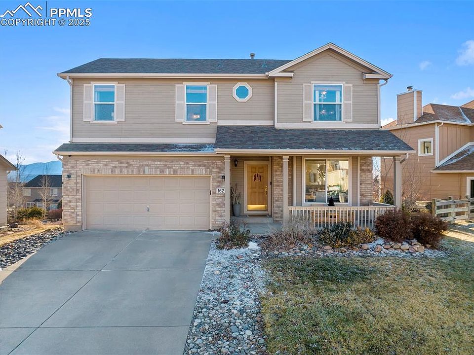 Nestled in the sought-after Jackson Creek neighborhood, this charming home offers breathtaking mountain views and a perfect blend of style and functionality. From the moment you enter, you’ll be captivated by the gorgeous hardwood floors, floor-to-ceiling fireplace, abundant natural light, and upgraded features throughout. The welcoming main floor features an upgraded kitchen with stainless steel appliances, granite countertops, and ample storage. Adjacent is a cozy, open family room with easy access to the deck, where you can unwind or entertain while taking in panoramic mountain views. Upstairs, the spacious primary suite offers an updated bathroom and a walk-in closet. Two additional bedrooms and a full bathroom provide plenty of space for family or guests. The walk-out basement boasts a large family room, an additional bedroom, and an updated bathroom. Step outside to the beautifully landscaped backyard, complete with a hot tub, where you’ll enjoy stunning sunsets and spectacular views of the Front Range and Pikes Peak. This meticulously maintained home comes with bonus updates, including a new Class 4/40-year roof (2023), a new water heater (2024), and a sump pump (2023). This desirable neighborhood offers an array of walking trails, convenient access to I-25, schools, parks, and shopping. Don’t miss your chance to call this beautiful home yours!